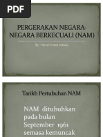 Pergerakan Negara-Negara Berkecuali (Nam) : Nam ditubuhkan pada tahun 1961 atas inisiatif presiden yugoslavia, josip broz tito yang mengumpul negara negara yang tidak memihak kepada mana mana kuasa perang.